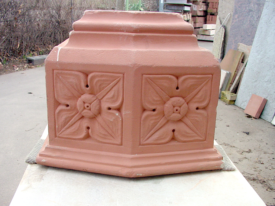 Die Restaurierung kann auch durch Verwendung von Steinersatzmaterialien erfolgen. Der Erfolg dieser Instandsetzungsmethode hängt von der Qualität der verwendeten Materialien und vor allem von der fachgerechten Ausführung ab. Die Rekonstruktion von Figuren oder von Teilen derselben fällt auch in diesen Arbeitsbereich. Es werden Abgüsse oder Gipsmodelle erstellt und daraus das zu ersetzende Teil neu anfertigt. Pflege und Konservierung schließt die umfassende Restaurierung von Werksteinen, Bauteilen und Plastiken ab.