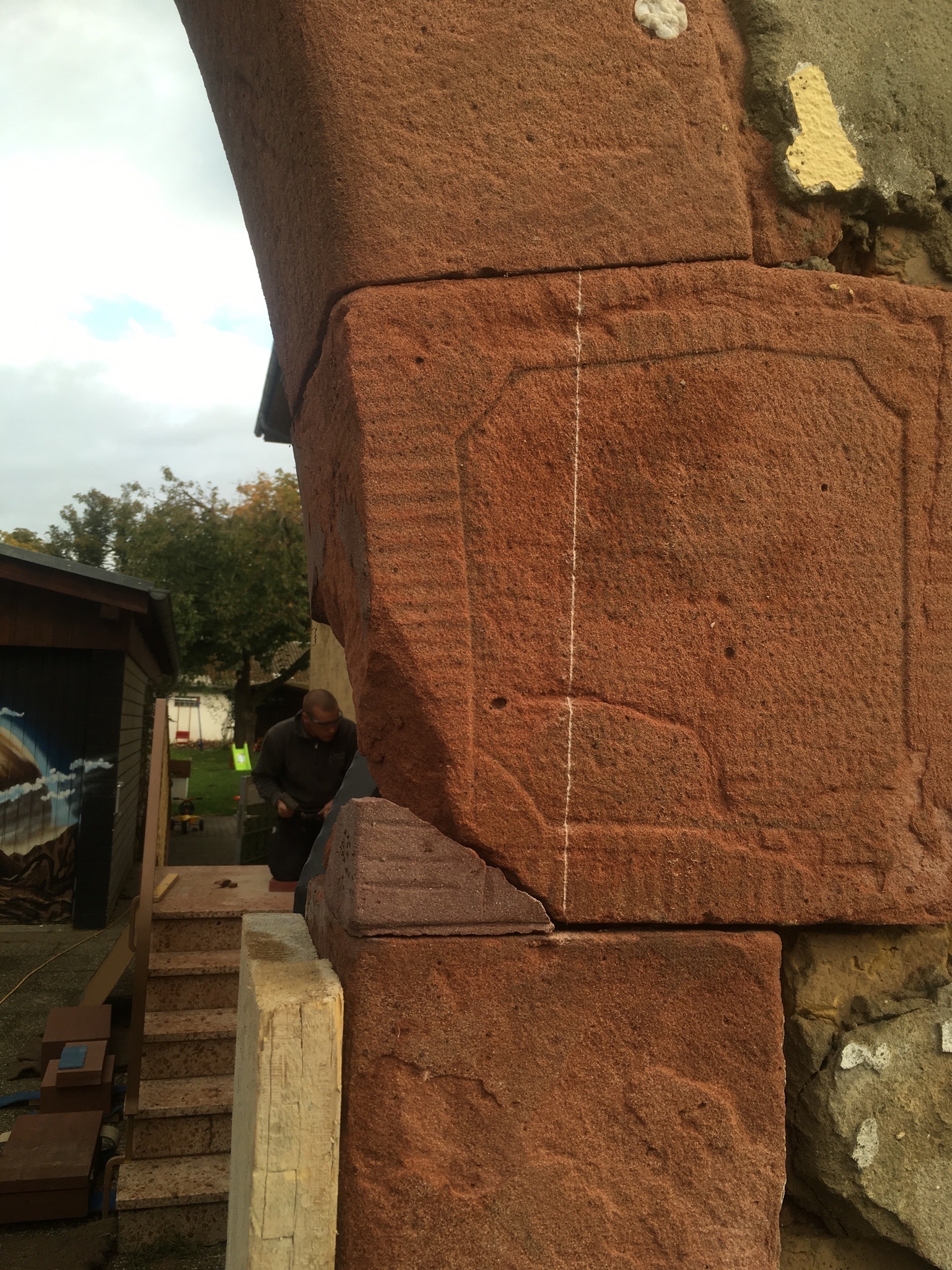 Die Renovierung kann durch Anfertigen und Einsetzen von Naturwerksteinteilen (Stein-Vierungen) erfolgen, die den beschädigten Teilstücken des Originals in Material, Formgebung und Oberflächenbearbeitung gleichen. Die für diese Arbeiten erforderlichen Kenntnisse und Fähigkeiten erfordern eine sorgfältige handwerkliche Präzisionsarbeit.